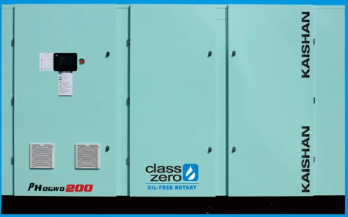 Абсолютно безмасляный: главный агрегат оснащён системой водяной смазки и герметизации; между компрессорной камерой и подшипниками применяется запатентованная система уплотнения, гарантирующая полную безмасляность всего оборудования. Вся серия прошла сертификацию TÜV (Германия), сжатый воздух соответствует классу 0 по содержанию масла (ISO 8573.1:2010).